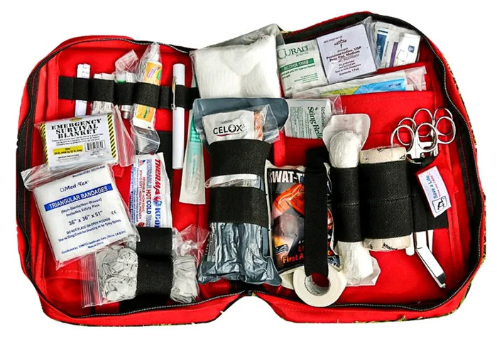 - ✂️ Tijeras afiladas → Cortar vendajes, ropa o gasas de forma precisa.